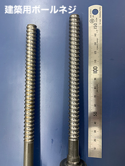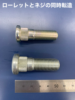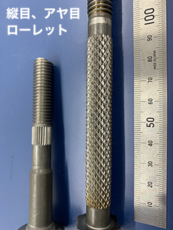 通常の三角形状のネジ山以外にもネジ山が丸みを帯びているボールネジの転造加工や、縦目、アヤ目のローレット加工、またこれらのローレットとネジの同時転造が可能です。