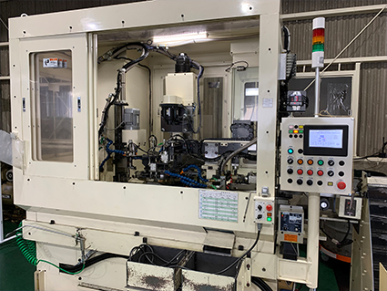 次に、切削などの工程が必要な場合は専用機によって加工され、その後ネジ製品はローリング(転造機)に、ピン製品は穴あけ機によって加工されます。